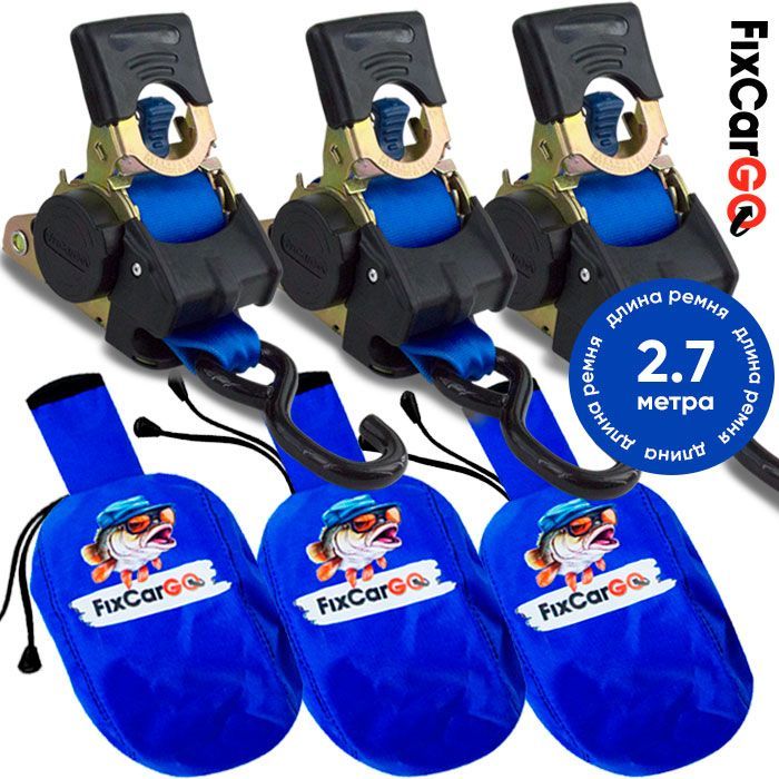 Стяжки для крепления груза автоматические 50 мм. 2,7 м. с чехлами (3 шт.)